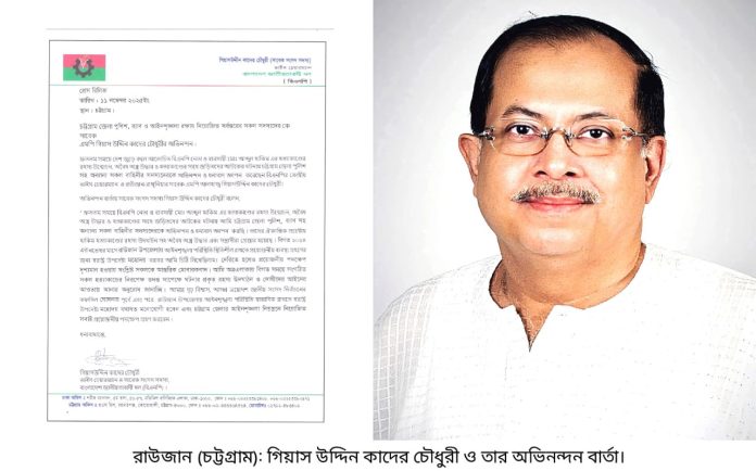 বিএনপির কেন্দ্রীয় ভাইস-চেয়ারম্যান ও রাউজান-রাঙ্গুনিয়া আসনের সাবেক সংসদ সদস্য আলহাজ্ব গিয়াস উদ্দিন কাদের চৌধুরী বিএনপি নেতা ও ব্যবসায়ী মোঃ আব্দুল হাকিম হত্যা মামলার দ্রুত রহস্য উদ্ঘাটন, অবৈধ অস্ত্র উদ্ধার এবং অভিযুক্তদের গ্রেপ্তারের ঘটনায় চট্টগ্রাম জেলা পুলিশ, র্যাব ও সংশ্লিষ্ট আইনশৃঙ্খলা বাহিনীর সদস্যদের আন্তরিক অভিনন্দন ও ধন্যবাদ জানিয়েছেন।