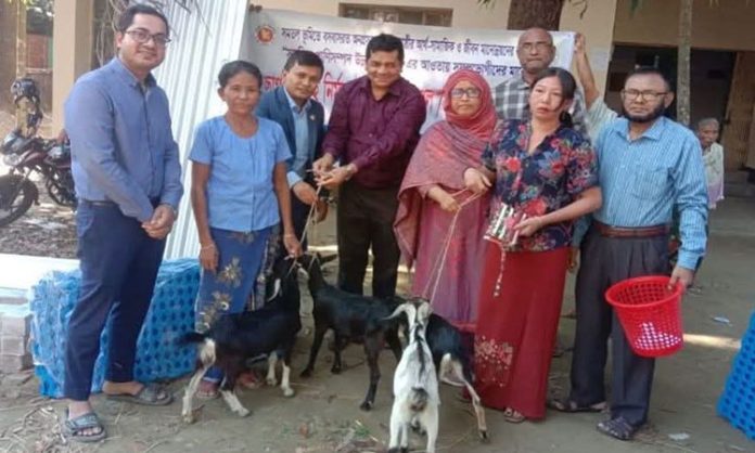 কক্সবাজারের চকরিয়ায় প্রাণিসম্পদ দপ্তরের উদ্যোগে সমতল ভুমিতে বসবাসরত অনগ্রসর ক্ষুদ্র নৃগোষ্ঠীর আর্থ সামাজিক ও জীবন মান উন্নয়নের লক্ষ্যে সমন্বিত প্রাণিসম্পদ উন্নয়ন প্রকল্পের আওতায় ৪৫টি পরিবারের মাঝে ২ টি করে ছাগল ও উপকরণ বিতরণ করা হয়েছে।