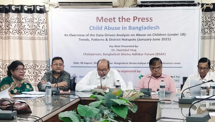 বাংলাদেশ শিশু অধিকার ফোরাম ও বাংলাদেশ শিশু কল্যাণ পরিষদের যৌথ আয়োজনে এ বিষয়টির উপর বিশেষ গুরুত্ব দিয়ে গত ২৮ আগস্ট ২০২৫ তারিখে বাংলাদেশ শিশু কল্যাণ পরিষদের কনফারেন্স রুমে একটি সাংবাদিক সম্মেলনের আয়োজন করা হয়। উক্ত সাংবাদিক সম্মেলনে বাংলাদেশের বর্তমান শিশু নির্যাতন পরিস্থিতি তুলে ধরেন বাংলাদেশ শিশু অধিকার ফোরাম এর চেয়ারপার্সন ডঃ হামিদুল হক। তিনি জানান, এসব নির্যাতন যেমন পরিবারের বাইরে হচ্ছে, তেমনি পরিবারের অভ্যন্তরেও কিছু নির্যাতনের ঘটনাও সংঘটিত হচ্ছে। যে সকল শহরে শিশু নির্যাতনের মাত্রা বেশি সেই সকল বিশেষ করে জেলা শহরগুলোতে পরিবার, কমিউনিটি সদস্যদেরকে সম্পৃক্ত করে সচেতনতামূলক প্রচারণা চালানো ও স্কুল ভিত্তিক সচেতনতামূলক প্রচারণা কার্যক্রম পরিচালনা করা খুবই জরুরী হয়ে পড়েছে। সেই সাথে বিদ্যমান নারী ও শিশু নির্যাতন দমন আইন ও শিশু আইনের সুষ্ঠু বাস্তবায়ন হতে হবে। সবার আগে শিশুর অধিকার ও সুরক্ষার বিষয়টিকে প্রাধান্য দিতে হবে। শিশু নির্যাতনের ক্ষেত্রে অনেক সময় সঠিক সংবাদ ও সময়মতো যথাযথ সহায়তাও পাওয়া যায় না। সে বিষয়েও সর্বাধিক গুরুত্ব দিতে হবে। লক্ষ্য হবে একটাই; দেশের একটি শিশুও যেন কোন ধরনের শারীরিক, মানসিক ও যৌন নির্যাতনের শিকার না হয়।