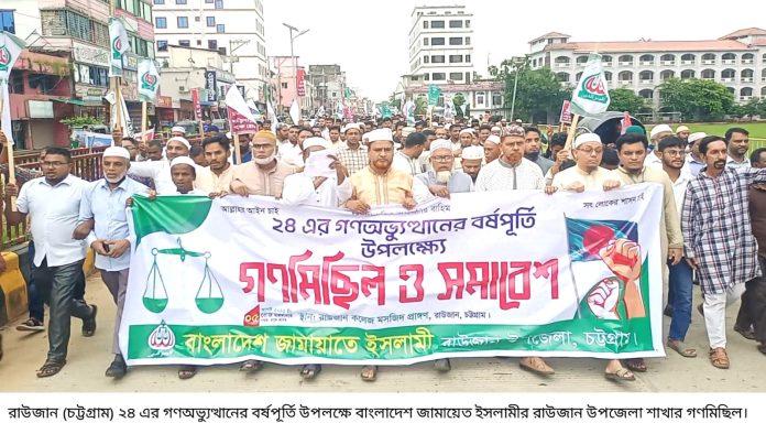 রাউজানে ৫ আগস্ট গণঅভ্যুত্থান দিবস উপলক্ষে জামায়াত ইসলামী’র গণমিছিল ও সমাবেশ