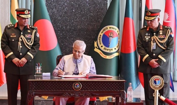 অধ্যাপক ইউনূস আজ মিরপুর সেনানিবাসে ডিএসসিএসসি কমপ্লেক্সে সামরিক বাহিনী কমান্ড ও স্টাফ কলেজ (ডিএসসিএসসি) কোর্স ২০২৫-এর সনদ বিতরণ অনুষ্ঠানে এ কথা বলেন।