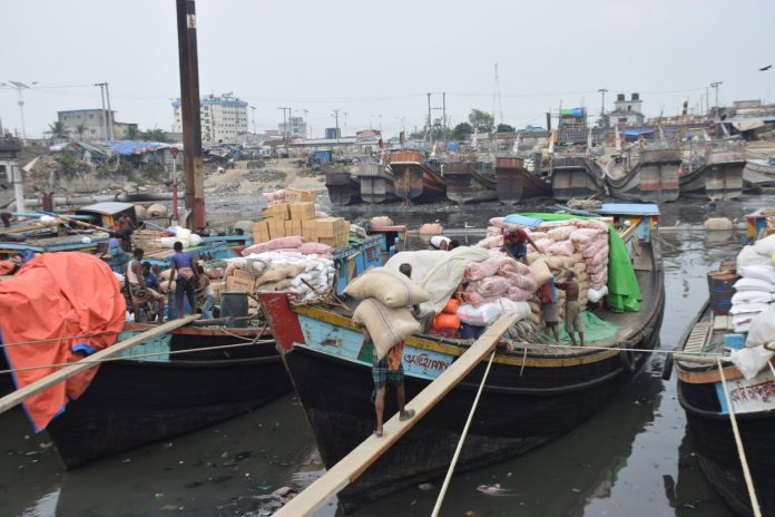 নদী পথে ব্যবসায়ী, শ্রমিক ও মাঝি-মাল্লাদের হাঁক-ডাকে এখন সরগরম খালের দুই পাড়।