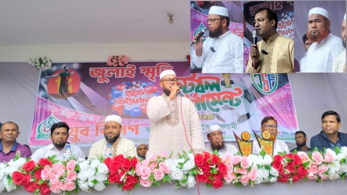 বাংলাদেশ জামায়াতে ইসলামী যুব বিভাগের উদ্যোগে আয়োজিত মাসব্যাপী “জুলাই স্মৃতি ফুটবল টুর্ণামেন্ট-২৫” এর শুভ উদ্বোধন অনুষ্ঠিত হয়েছে। শুক্রবার (৪ জুলাই) বিকেলে বাঁশখালী কালীপুর এজহারুল হক বিদ্যালয় মাঠে জমকালো আয়োজনের মাধ্যমে এই টুর্ণামেন্টের উদ্বোধন ঘোষণা করা হয়।