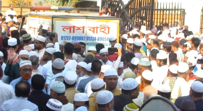 শুক্রবার (২১ নভেম্বর) জুমার নামাজের পর ভোলার বাংলাবাজার ফাতেমা খানম জামে মসজিদের মাঠে তার জানাজা অনুষ্ঠিত হয়। জানাজা শেষে কোড়ালিয়া গ্রামের নিজ পারিবারিক কবরস্থানে তাকে দাফন করা হয়।