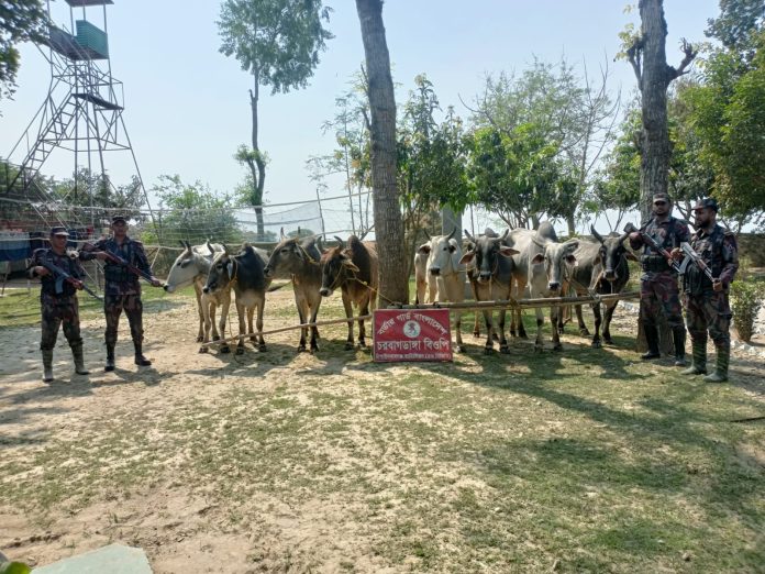 চাঁপাইনবাবগঞ্জ সীমান্তে পৃথক অভিযানে ১০ ভারতীয় গরু জব্দ