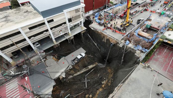 থাইল্যান্ডের রাজধানী ব্যাংককে বুধবার সকালে এক ভয়াবহ সড়ক ধসের ঘটনা ঘটেছে। শহরের স্যামসেন রোডে ভজিরা হাসপাতালের সামনেই হঠাৎ বড় একটি অংশ ধসে গিয়ে বিশাল সিংকহোল সৃষ্টি হয়। এতে রাস্তায় থাকা অন্তত তিনটি যানবাহন ধসে পড়া গর্তে তলিয়ে যায় এবং বিদ্যুৎ ও পানি সরবরাহ মারাত্মকভাবে ক্ষতিগ্রস্ত হয়।