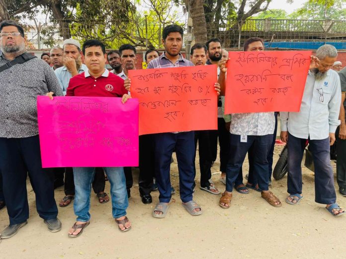 নিউজ ডেস্ক : ইউনিলিভার বাংলাদেশ লিমিটেডের শ্রমিকরা বেতন বৃদ্ধিসহ বেশ কিছু দাবিতে মানববন্ধন করেছেন। আজ বৃহস্পতিবার ইউনিলিভার বাংলাদেশ লিমিটেড এর কালুরঘাট ফ্যাক্টরীর গেইটে চট্টগ্রামে কর্মরত শ্রমিকরা এ মানববন্ধন করেন।