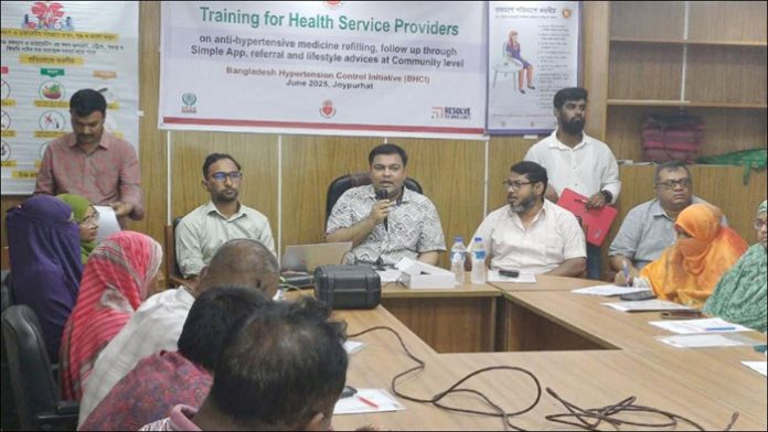 জয়পুরহাটের পাঁচবিবি ও আক্কেলপুর উপজেলা স্বাস্হ্য কমপ্লেক্স থেকে উচ্চ রক্তচাপ ও ডায়াবেটিস নিয়ন্ত্রনে এনসিডি কর্নারের কার্যক্রম তুলে ধরা ও সকল প্রাপ্তবয়সীদের কমিউনিটি ক্লিনিক থেকে রক্তচাপ পরিমাপ, উচ্চ রক্তচাপের রোগীদের বিনামূল্যে এনসিডি কর্নার থেকে ঔষধ সরবরাহ সহ কম্যুনিটি পর্যায়ে জনসচেতনতা বৃদ্ধির লক্ষ্যে সিএইচসিপি ও কম্যুনিটি গ্রুপের প্রতিনিধিদের নিয়ে গতকাল সকাল ১০ টায় উপজেলা স্বাস্থ্য কমপ্লেক্স মিলনায়তনে পৃথক পৃথক দুটি প্রশিক্ষণ কর্মশালা অনুষ্ঠিত হয়েছে। স্বাস্থ্য মন্ত্রণালয়ের নন-কম্যুনিকেবল ডিজিজ কন্ট্রোল-এনসিডিসি প্রোগ্রাম ও ন্যাশনাল হার্ট ফাউন্ডেশন এর উদ্যোগে আয়োজিত এ প্রশিক্ষণে উদ্বোধনী বক্তব্য দেন পাঁচবিবি উপজেলা স্বাস্হ্য কর্মকর্তা ডা: শ্রী তরুন কুমার পাল। প্রাশিক্ষক হিসেবে উপস্থিত ছিলেন ন্যাশনাল হার্ট ফাউন্ডেশন এর বিভাগীয় প্রোগ্রাম অফিসার এহসানুল আমিন ইমন ও সার্ভিলেন্স মেডিকেল অফিসার ডা: প্রিতম সাহা।